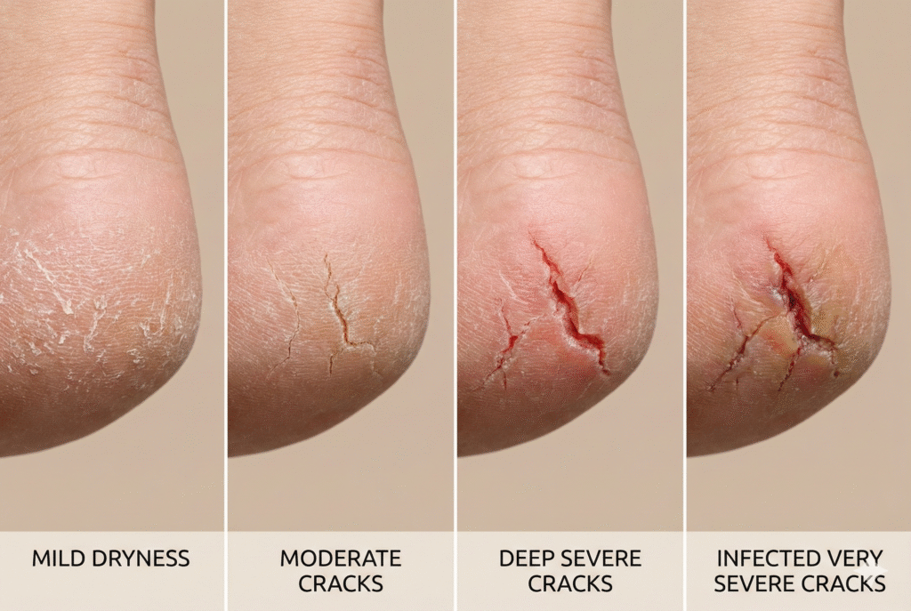 2. Severity कैसे पहचानें? आपकी एड़ियां कितनी “फट” चुकी हैं?