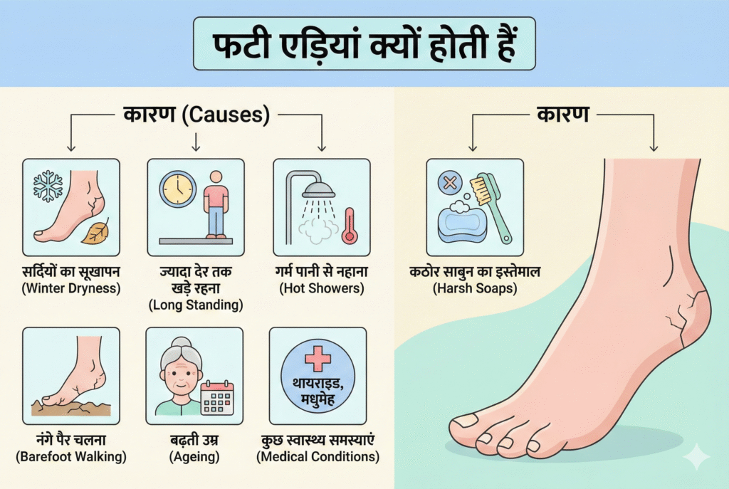 1. फटी एड़ियां क्यों होती हैं? (Common Causes)