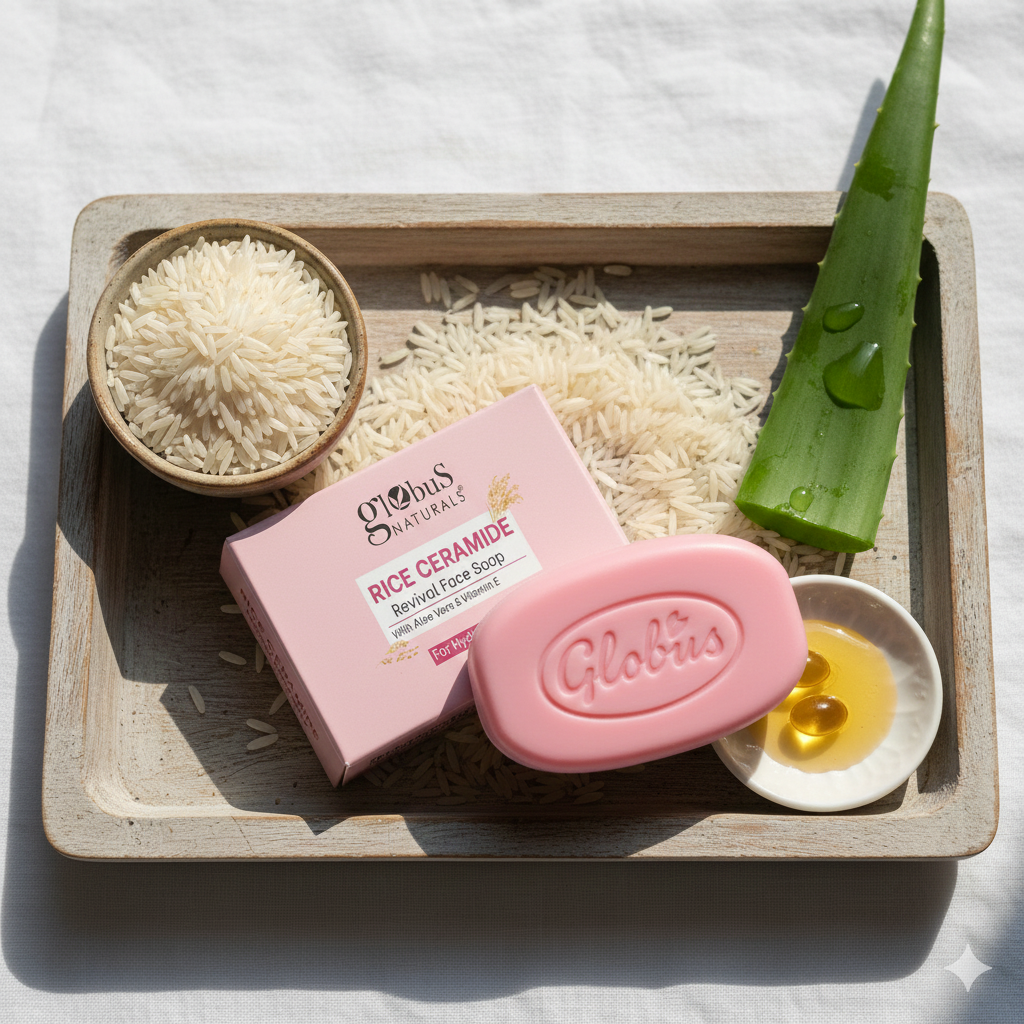 मैंने कुछ समय पहले Globus Naturals का Rice Ceramide Glow Face Soap ट्राई किया था, खासकर सर्दियों में जब मेरी स्किन पपड़ी जैसी हो जाती थी। इसमें बिल्कुल वही ट्रायो है जिसकी बात हमने की – राइस सेरामाइड (हाइड्रेशन के लिए), एलोवेरा (सूदिंग के लिए), और विटामिन ई (न्यूट्रिशन के लिए)। ये SLS और पाराबेंस फ्री है, जो एक बड़ा प्लस पॉइंट है।